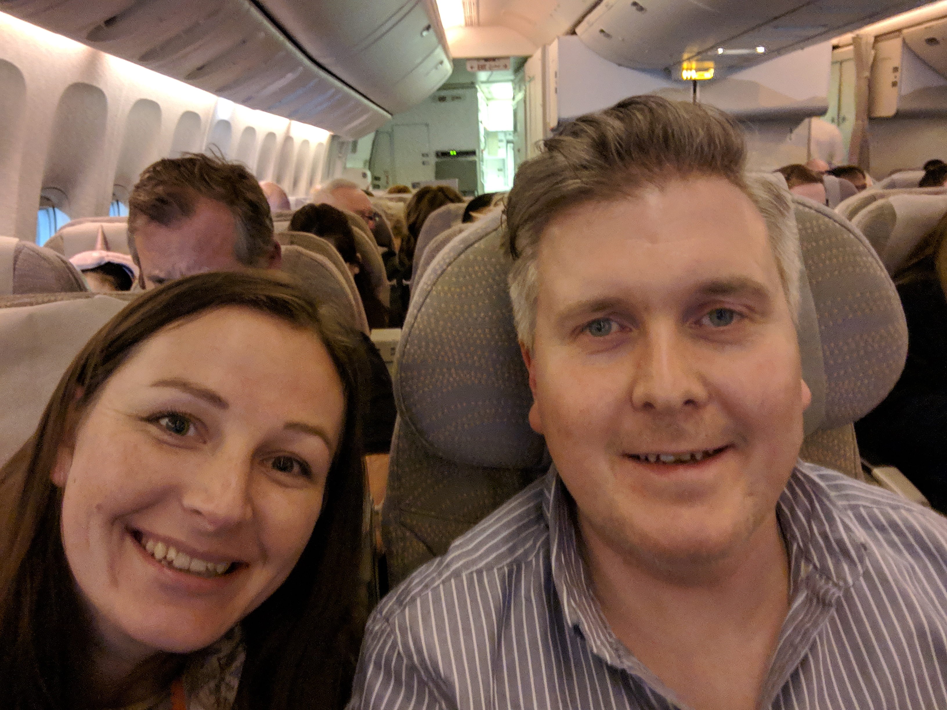 When we got to the check-in desk Richie was quick to point out to the man from Emirates that he didn’t want to know where he was going so could he do the passport bit first and then go away while I sorted the rest out, and luckily the he was completely on board! He was so helpful and understanding, and a bit excited about the prospect of our trip that it all went off without a hitch – we were checked in and on our way.