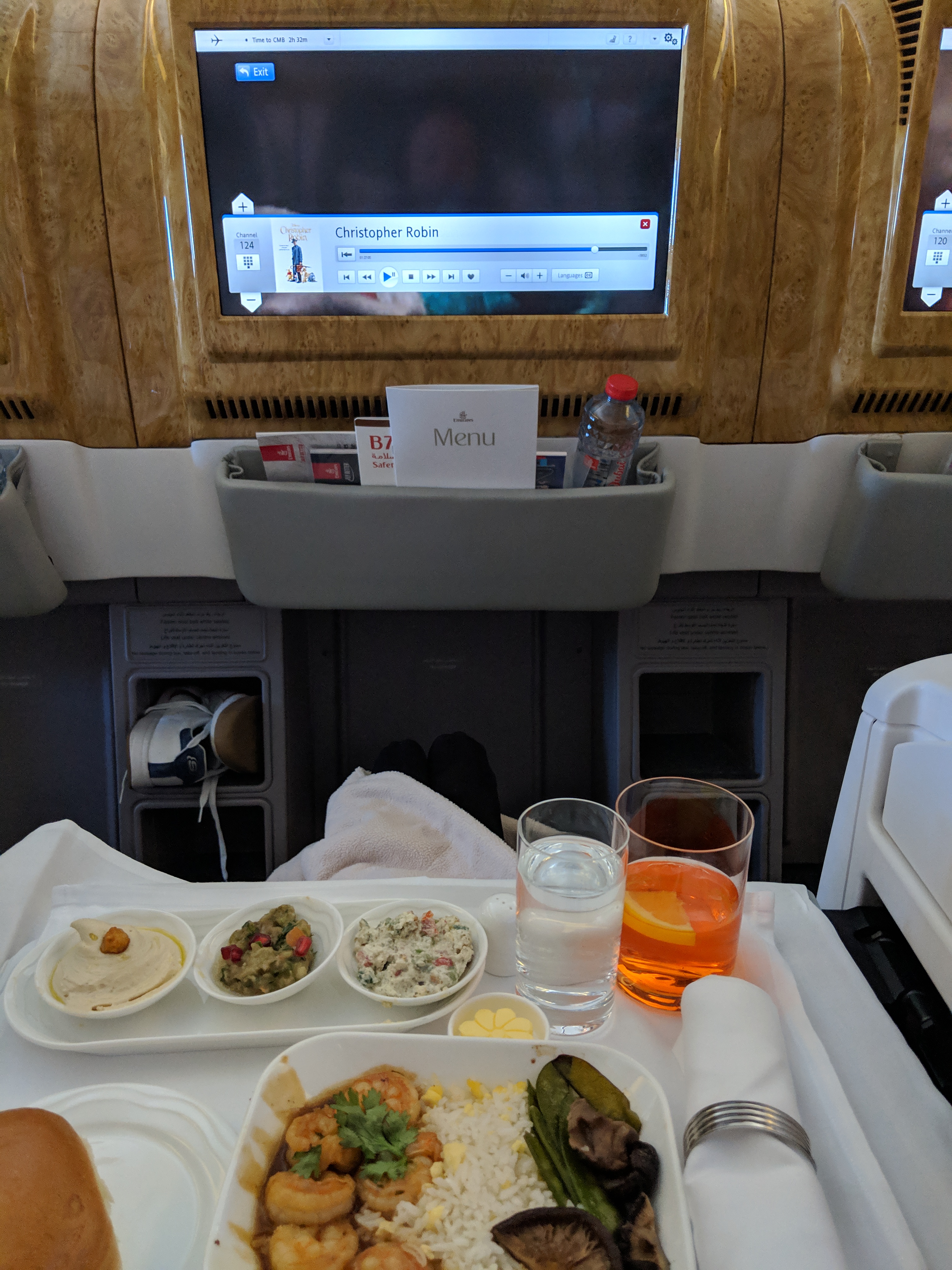 And one final treat was that for this leg we were going Business Class – something which we will probably never do again! I have to admit that Business Class really is another world, the fact you can lie down fully to sleep, have noise cancelling headphones and are presented with cocktail list and wine list is just the beginning. The most surprising part was when we they laid out a table cloth for lunch, with a proper napkin and proper cutlery. All in all it was a lovely experience, which has slightly tainted all our other economy flights ever since!