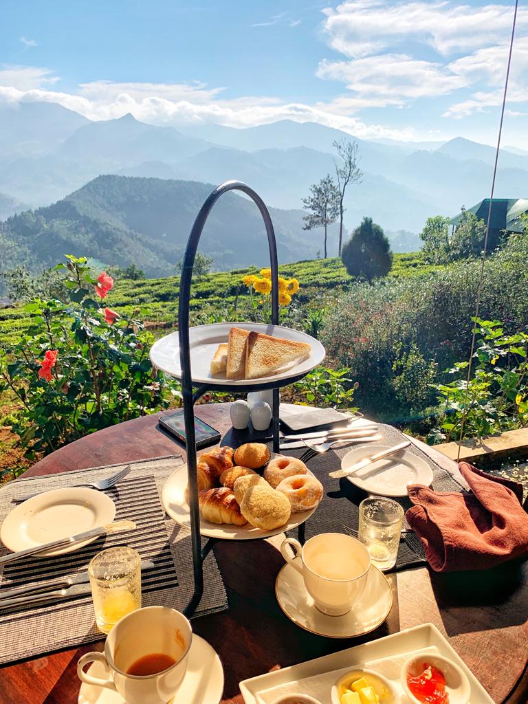 I secretly knew this was probably going to be my favourite part of the trip so I was really excited to get there. We had arranged for our driver from our trip to Nurawa Eliya to take us up to the lodge from Kandy (for 5500rps/£23 each way) and set off early on the Friday morning. My excitement increased as the views got better and better the higher we went, and when finally caught a glimpse of one of the lodges as we turned a bend I couldn’t help but let out a squeal of happiness – it looked like everything I had hoped for. The journey took just under an hour and a half so we arrived around 10.30am. We received a Hindu welcome at the front door and shown through to the terrace at the rear of the main building, our jaws dropped at the view!