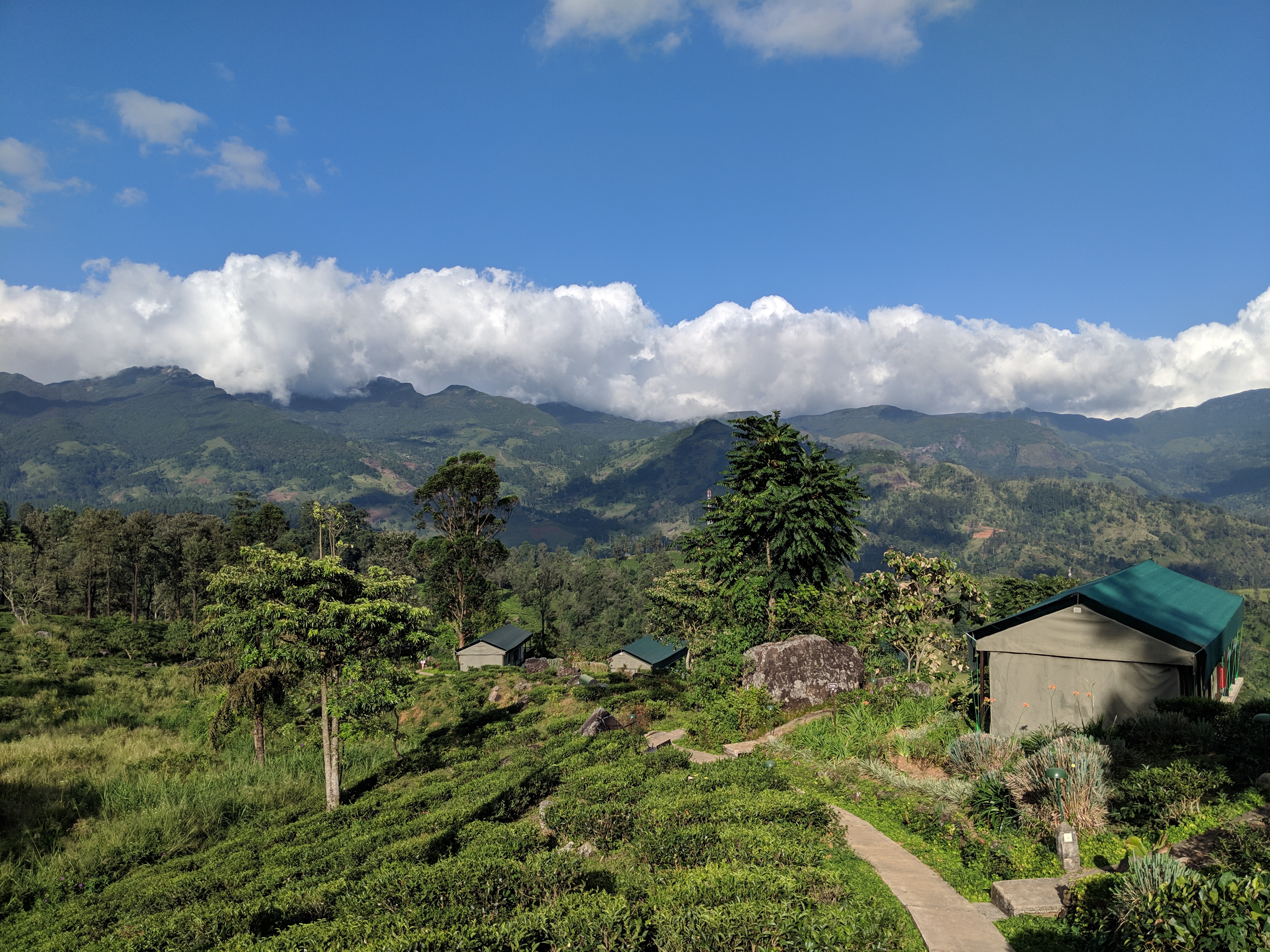 The lodges sitting in the tea plantation