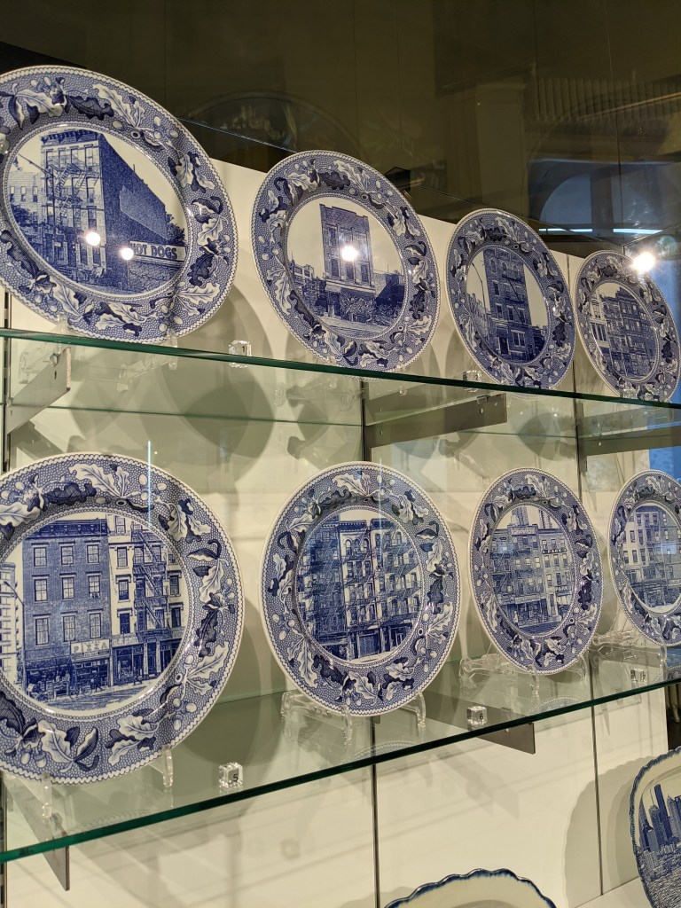 Our first destination was Reeth in North Yorkshire. The weather was pretty awful (officially the wettest day in UK history) and as Reeth was a few hours drive away we decided to stop on the way at a museum recommended by my parents, the Bowes Museum in Barnard Castle. The museum is excellent, set in a French Chatteau style building it can easily take up 2 hours to explore the rooms and grounds. We had a lovely lunch of soup and sandwiches in the cafe, and were happily out of the rain. One of the top finds were these plates by Paul Scott which illustrated American scenes on traditional ceramics.