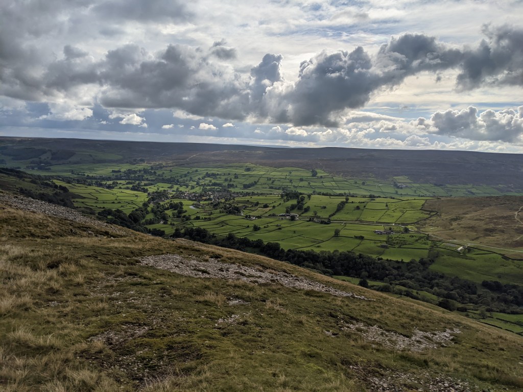 Luckily the next day the weather had cleared and after a hearty breakfast we were able to get out and explore Reeth. Reeth is a reasonably small village nestled in the Swaledale area of the Yorkshire Dales, surrounded on all sides by tall fells. It is quite well set up with 3-4 hotels plus a couple of shops, all set around a lovely green. We knew we wanted to do some walking and decided on a route which started and finished in the village to avoid needing to venture out in the car. After looking at the surrounding hills, and a trip to the post office where we bought a very useful map, the route we chose was along Fremington Edge.