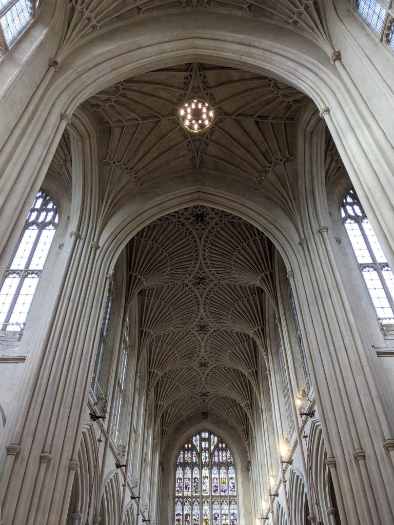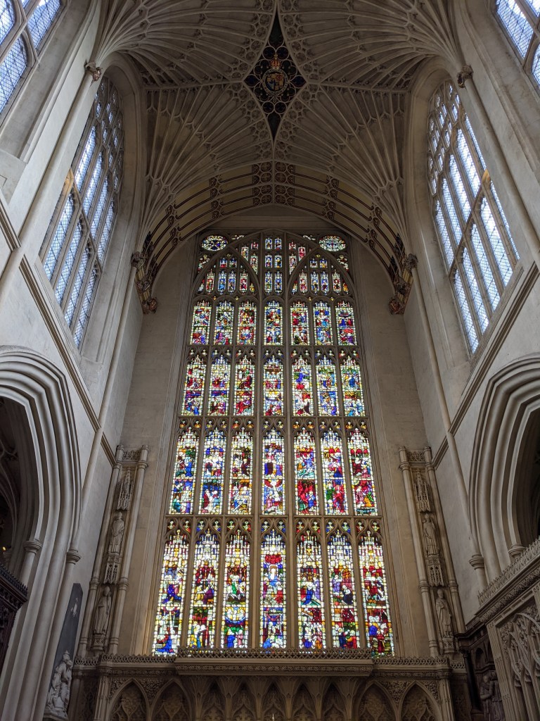 With our trip round the baths taking a lot less time than we originally thought we had some time to spare. Just next to the Roman Baths is Bath Abbey which is a beautiful building. We aren’t religious but as an architect I do enjoy visiting buildings and so we popped in – it was free entry but we did have to fill in the track and trace for covid restrictions. When we visited part of the abbey floor was being restored so we weren’t able to access the central space but we did get up to the nave to admire the extensive stained glass. It was such a peaceful and calming place that I would recommend a visit no matter your religious background.