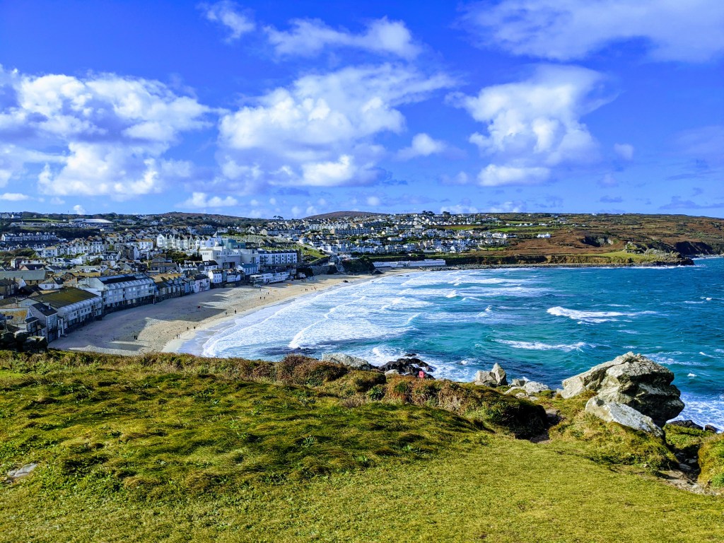 The path is in pretty good condition and easy to follow, though there are a few forks where you have to be carefull which one to pick so you don’t end up on a big detour. Due to the nature of the landscape it is quite undulating and so there is a lot of going up and down headlands which is a bit tiring. The scenery though is worth it, and as we walked into a bracing headwind it certainly blew away the cobwebs! The route we were taking noted it was 6 miles to Zennor so when we had walked 6.5 miles with no sign of any turn off or settlements we started to get worried, but speaking to other walkers they noted the same so we carried on. After 7 miles we reached a fork in the path and knew to head inland to reach Zennor. There isn’t much in Zennor but there is a good pub – what more do you need! We stopped for a well earned pint and a snack sitting in the sunny beer garden feeling slightly more tired than expected. We had intended to walk back to St Ives across country but looking at the time we realised we hadn’t left enough time. Luckily the other useful thing about Zennor is that there is also a bus stop, and there was a bus arriving at the perfect time for us to hop on. We were surprised to find that the bus was an open top one which travels the Cornish coast, so we had great views all the way back to St Ives. In the end I’m pleased we got the bus, we say bits of the local area we wouldn’t have seen otherwise and managed to make it home in time for dinner.