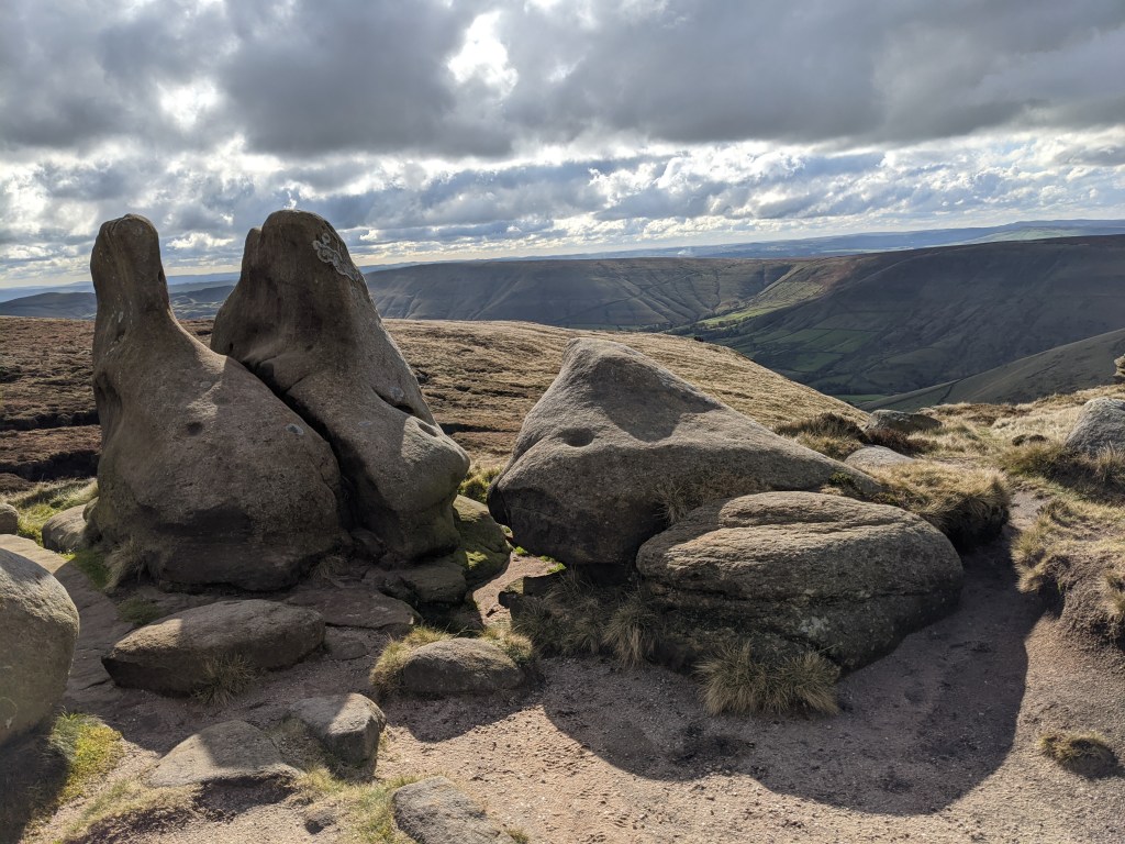 Once you are up on the plateau it is much easier going. We followed another flagged footpath which leads you round the edge of the plateau towards Kinder Fall. The views from the edge are spectacular, with amazing rock formations dotting the landscape as you make your way round.